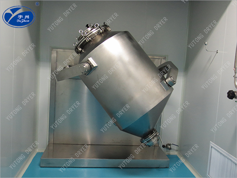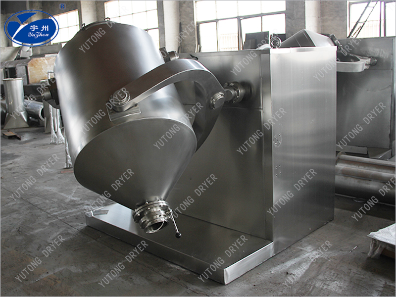 三維運(yùn)動混合機(jī)由機(jī)座、傳動系統(tǒng)、電器控制系統(tǒng),多向運(yùn)動工機(jī)構(gòu),混合桶等部件組成,與物料直接接觸的混合桶采用不銹鋼材料制造,桶體內(nèi)外壁均經(jīng)拋光。