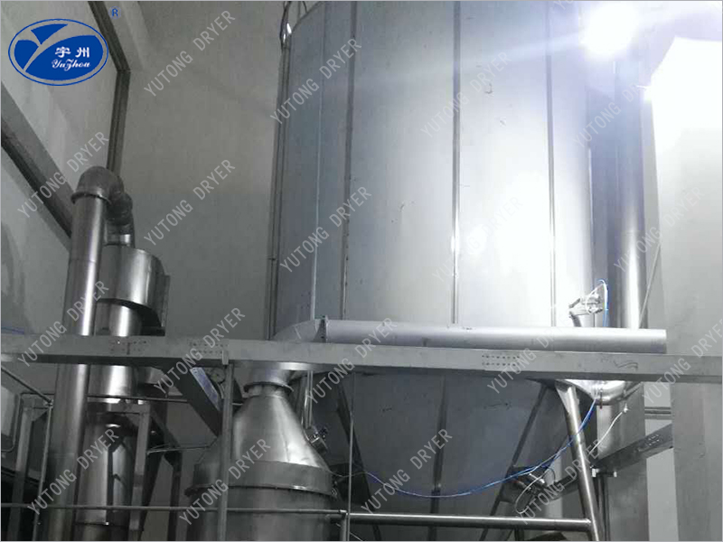(1)離心噴霧干燥機(jī)是利用高速離心式霧化器使物料分散成霧狀,與熱空氣充分接觸完成瞬間干燥,形成粉狀成品的干燥裝置。