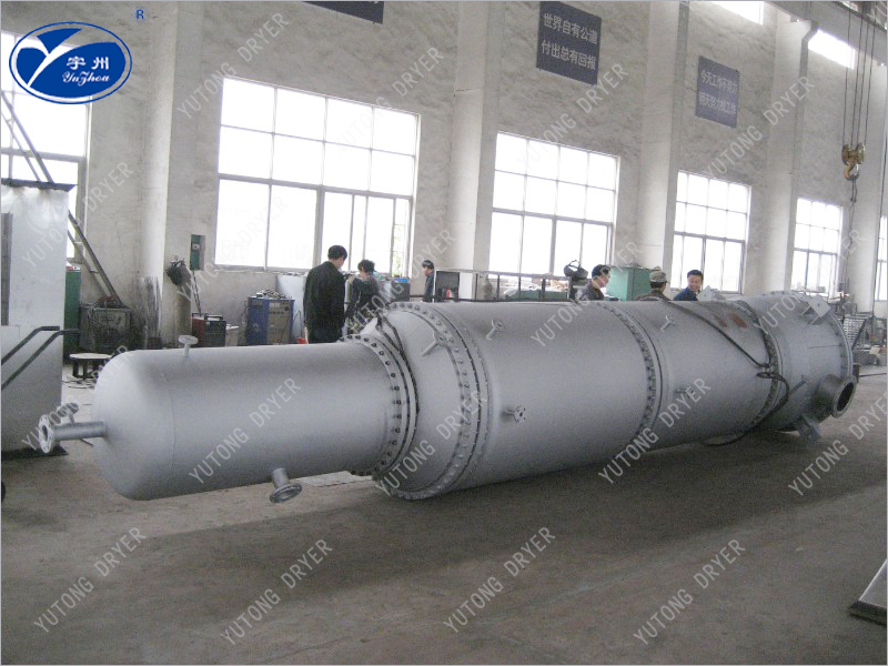 沸點的降低,增大了與熱介質(zhì)的溫度差;呈湍流狀態(tài)的液膜,降低了熱阻;同時抑制物料在壁面上結(jié)焦、結(jié)垢,也提高了蒸發(fā)筒壁的傳熱系數(shù);因此高效旋轉(zhuǎn)薄膜蒸發(fā)器的意傳熱系數(shù)可高達8000KJ/h.m2.℃,因此其蒸發(fā)強度很高。