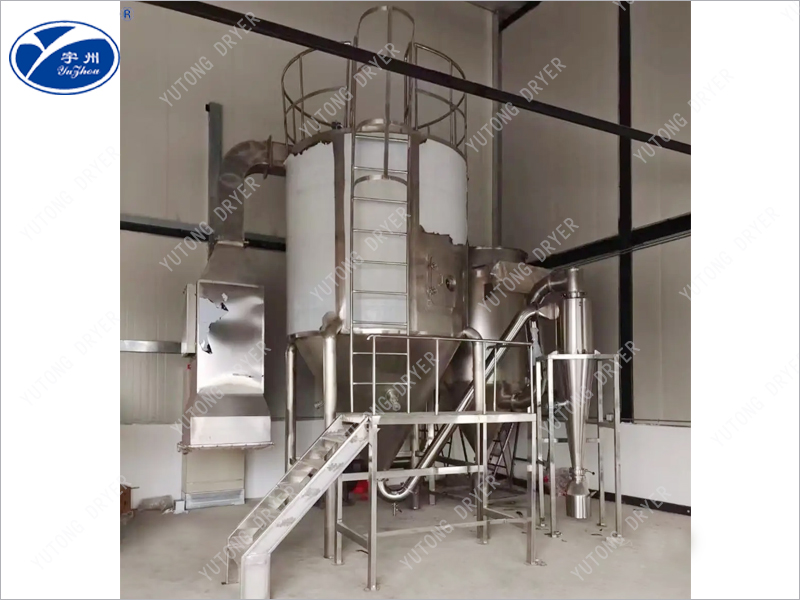 潔凈空氣加熱后進(jìn)入干燥塔,在塔內(nèi)熱風(fēng)中用二流體(或三流體)噴嘴將各種料液物化成微小液滴,與熱風(fēng)進(jìn)行快速熱交換,蒸發(fā)掉液料中的水份(或溶劑),并隨熱風(fēng)排出,得到粉狀產(chǎn)品。